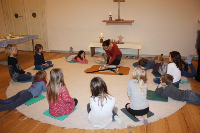 Ein pädagogisches Ziel von Godly Play/Gott im Spiel besteht darin, bei Kindern eine Sprache entwickeln zu lassen, wobei sie ihre Glaubenserfahrungen ausdrücken können. Eine Art dies zu machen ist durch die Kombination von uralten christlichen Symbolen und die eigene Kreativität der Kinder. One of our aims in Godly Play is to help children develop ways to express their faith in both verbal and non-verbal ways.  Combining historical symbols with their own creativity is one way of helping them do this.
